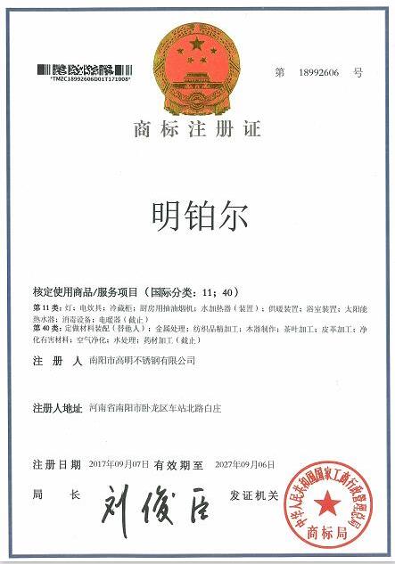明鉑爾®國(guó)家商標(biāo)知識(shí)產(chǎn)權(quán)榮譽(yù)證