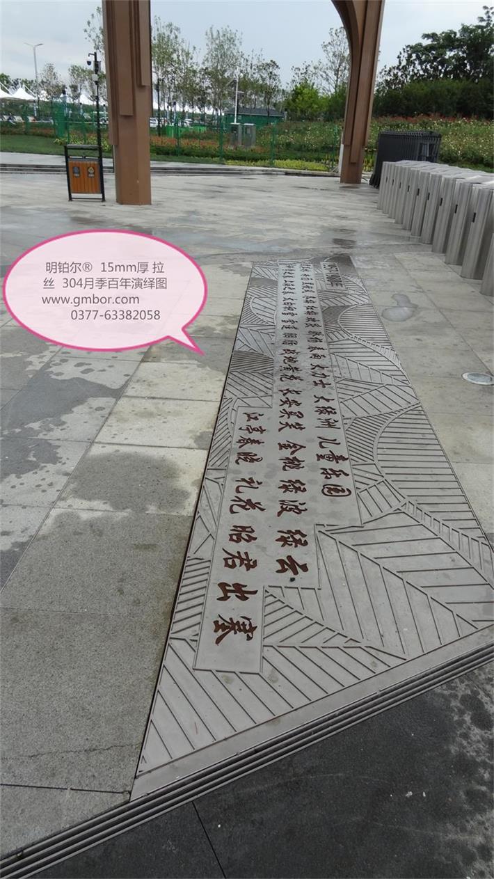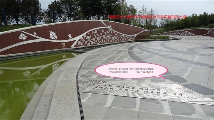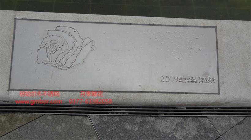 明鉑爾?不銹鋼月季園主入口大門304不銹鋼10毫米厚欄桿,6毫米厚水池10塊月季花圖,利用不銹鋼的拉絲紋路反光色差經(jīng)驗(yàn),解決了北京設(shè)計(jì)院林博士要求很難做到的不銹鋼激光雕刻2毫米深度的月季花圖效果,經(jīng)過我數(shù)10次的大樣,努力,研究終于做出了最佳理想的效果,出乎意料之外的精美,背后多少時(shí)間的付出,不惜一切代價(jià)的努力方能成就精品。1957年至今13塊月季名稱地雕,近200平方擋墻6毫米月季花雕刻圖,這些所有的產(chǎn)品沒處細(xì)節(jié),每一條線都經(jīng)過CAD在電腦修改檢查再修改再檢查,打樣再修改再細(xì)化的一個(gè)漫長(zhǎng)的圖紙修改過程最終敲定的方案效果,擋土墻鉚釘內(nèi)陷,我們加焊接整體再拉絲處理,每一處方案都是創(chuàng)最優(yōu)品質(zhì)去展現(xiàn)給南陽不銹鋼月季藝術(shù)的高水準(zhǔn),為迎接全國人民的到來參觀,憑著高要求做我們最優(yōu)的產(chǎn)品奉獻(xiàn)給南陽這片土地…